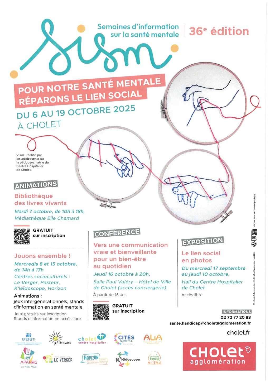- Exposition « Le lien social en photos », du 17 septembre au 10 octobre – Hall du Centre Hospitalier de Cholet