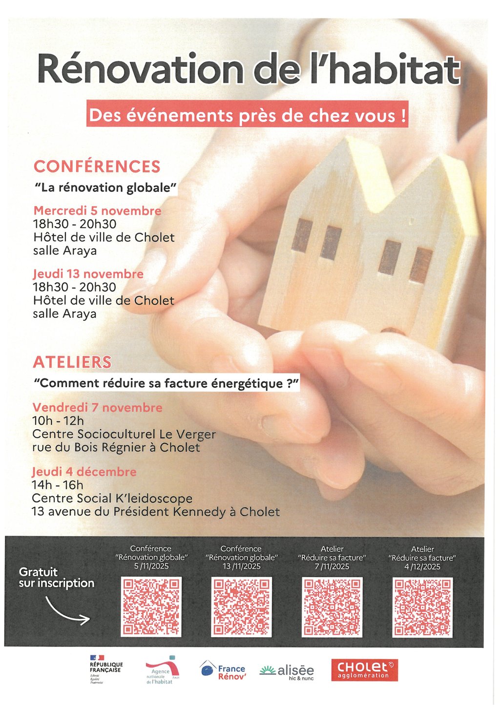 L'amélioration de son logement est devenue une priorité pour de nombreux habitants. C'est pourquoi Cholet Agglomération, en partenariat avec l'Espace Conseil France Rénov' du Maine-et-Loire, propose à tous les habitants du territoire un service d'information et de conseils sur les travaux d'amélioration de l'habitat.