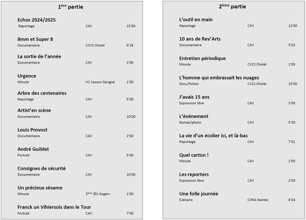 Vous n'avez pas pu venir les 10 et 11 novembre 2025 à Vihiers, voici une chance supplémentaire d'assister au festival de courts métrages des Cinéastes Amateurs Vihiersois.