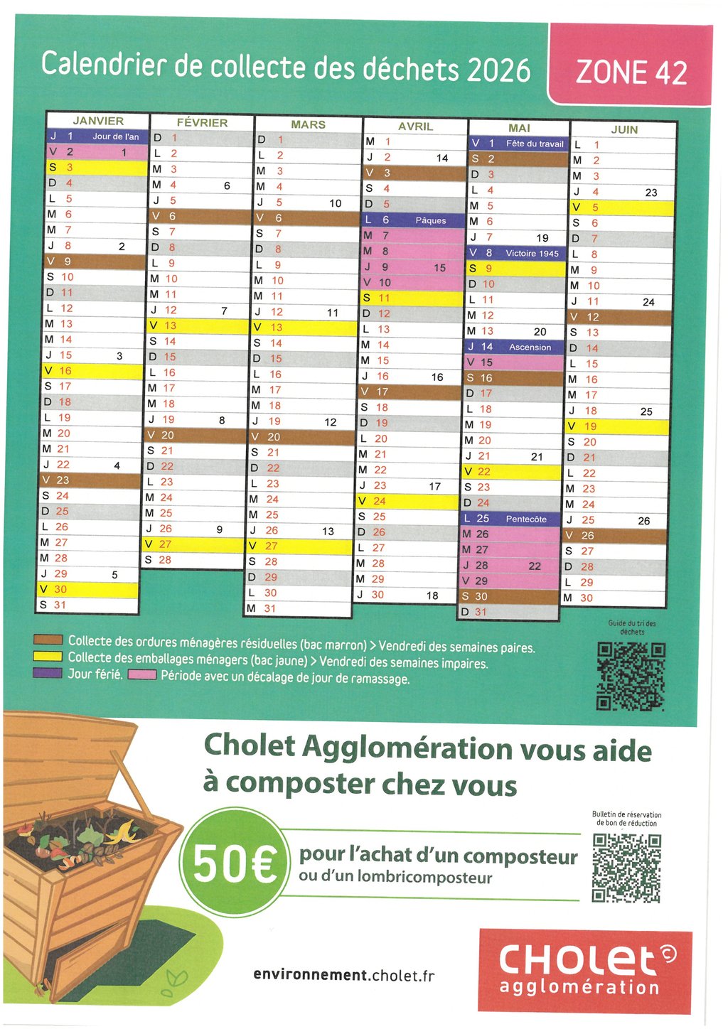 Téléchargez-ci-dessous le calendrier de collecte des déchets 2026: Zone 42